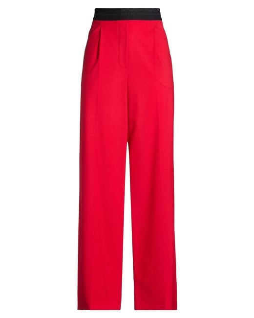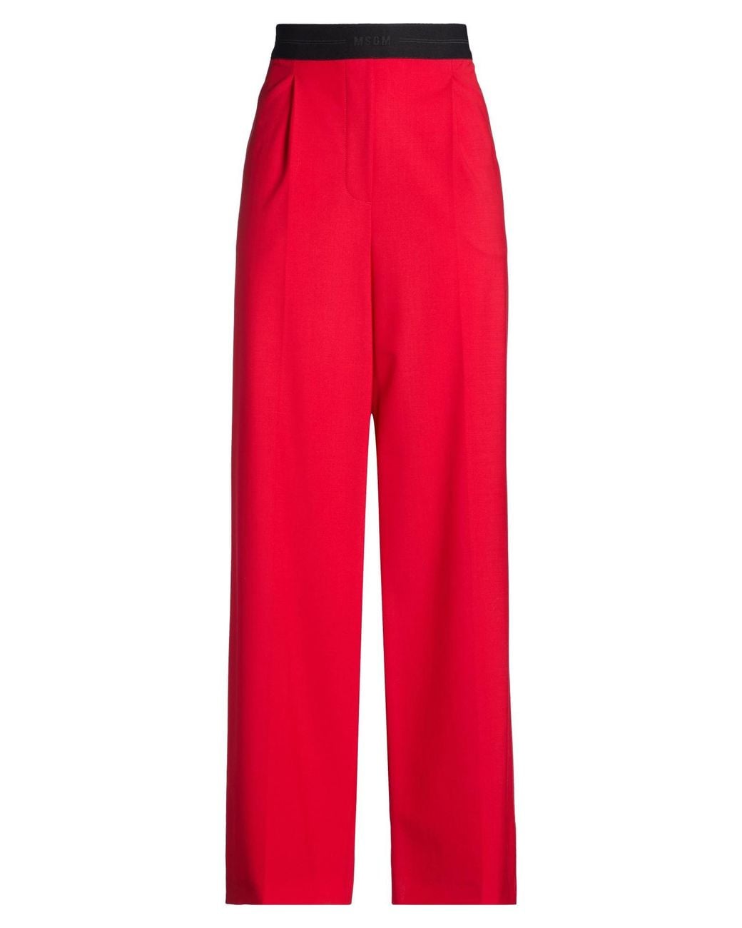 Wide-leg pants, cool wool, stretchy fabric, solid color, brand logo, high waisted, elasticized waist, relaxed fit, slit pockets, welt pocket, dry clean, do not bleach, do not tumble dry , Color: Red , Size: 8