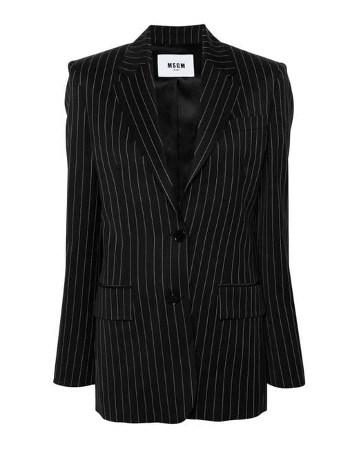 Pinstriped jacket, navy blue, classic lapels, with buttons, shoulder pads, cuffs with buttons, welt chest pocket, two pockets with flap, italia n-style rear vents, straight hem, with jacquard logo Color: black