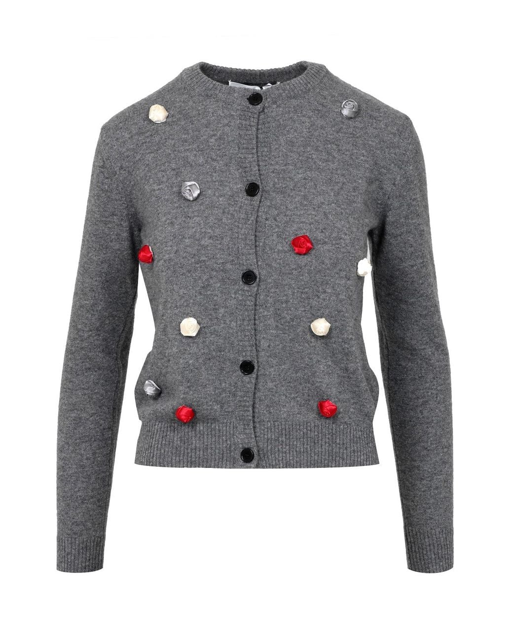 - Wool - Ribbed crew neck - Long sleeves with ribbed cuffs - Exposed front button closure - Satin appliqué rosettes - Regular fit - Made in Italy Color: gray