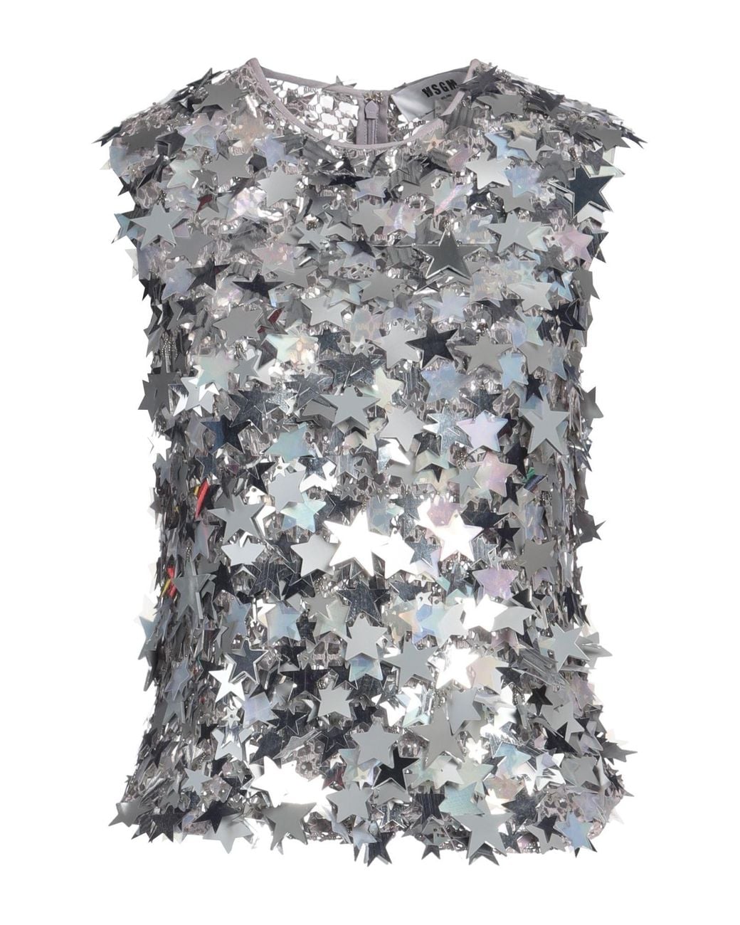 Top, chainmail, solid color with appliqués, sequins, crewneck, sleeveless, zipper fastening, dry clean, do not bleach, do not tumble dry, amp up the glamour with chic designer party outfits for your next event or fun night out , Color: Gray , Size: 4