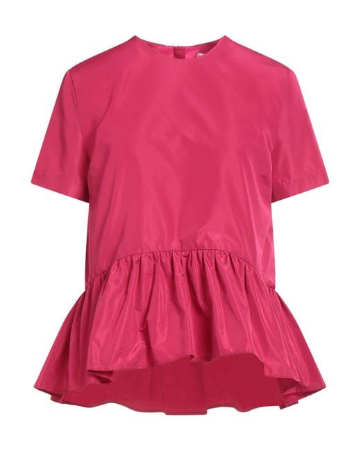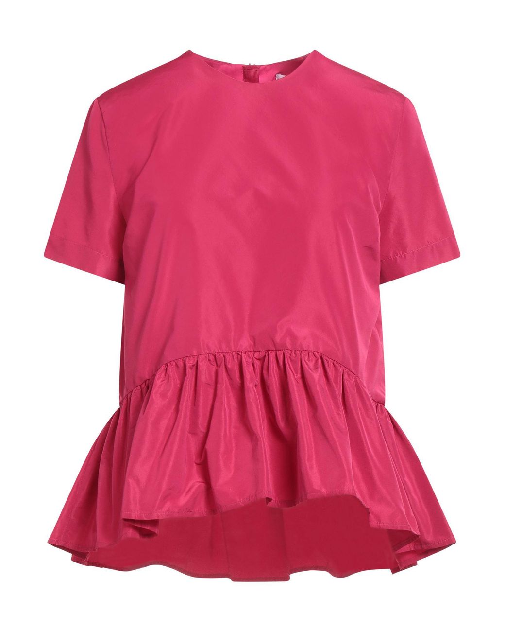 Taffeta, no appliqués, solid color, crewneck, short sleeves, zipper fastening, without pockets, dry clean, do not bleach, do not tumble dry, top , Color: Magenta , Size: 2