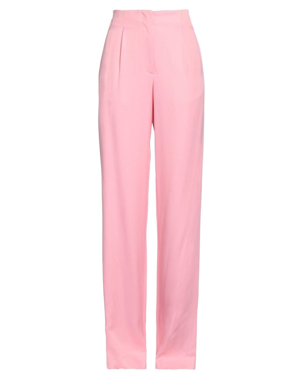 Satin, no appliqués, solid color, high waisted, straight leg, regular fit, hook-and-eye closure, zipper closure, multipockets, pants , Color: Pink , Size: 2