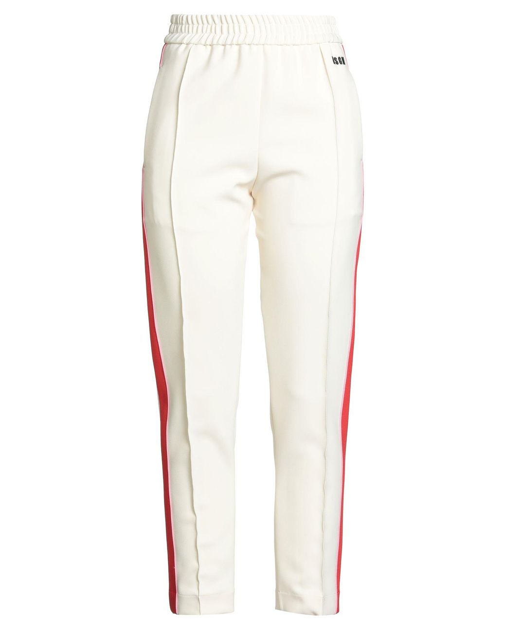 Tapered pants, crepe, stretchy fabric, solid color with appliqués, embroidered logo, side seam stripes, high waisted, elasticized waist, relaxed fit, slit pockets, hand wash or dry clean, do not bleach, do not tumble dry , Color: Ivory , Size: 4