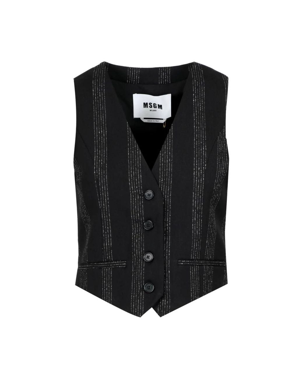 Elevate your closet with this sophisticated wool vest featuring a chic pinstripe pattern and a sleek V-neck design. Key attributes: Black | Wool | Single-breasted button placket | Welt pockets | V-neck | Pinstripe pattern | Pointed bottom hem | Dimensions & fit: Slim fit | Composition & care: 100% Wool | Dry clean only Color: black
