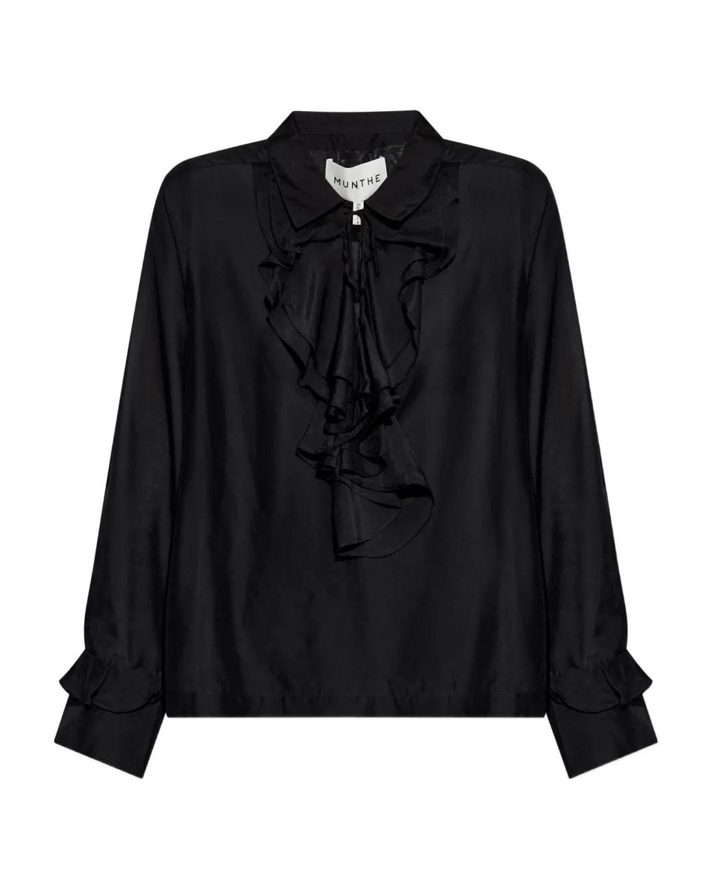Black layered-ruffle detail collared neckline long sleeves ruffled cuffs tie fastening Size: 34. Gender: Female. Material:Viscose/Silk. Color: black