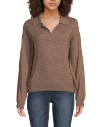 Go to Rue La LaAbout the brand: Luxuriously soft, sustainable cashmere. Wool & Cashmere-Blend Polo Sweater in olive with ribbed trim, and johnny collar Approximately 23in from shoulder to hem Model is 5'9.5 and is wearing a