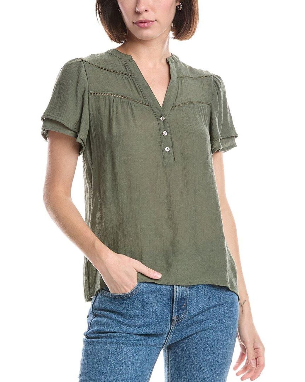 Color/Pattern: Prairie Sage Approximately 23In From Shoulder To Hem Model Is 5'10 And Is Wearing A Size Small. Measurements May Vary Slightly By Size. Design Details: V-Neck, And Layered Sleeves Button Placket 65% Rayon, 35% Polyester Hand Wash Imported Color: green
