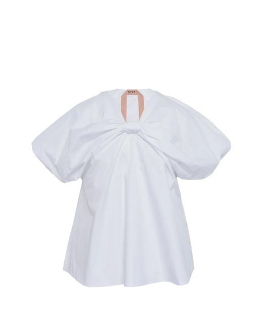 White puffed sleeves front bow detail round neck gathered detail Size: 38. Gender: Female. Material:Fabric. Color: white