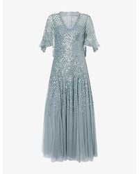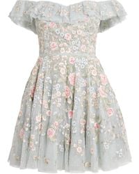 Needle & Thread Women's Natural Gloss Floral-Embellished Tulle Mini Dress