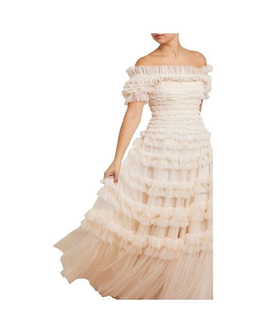 Women's Natural Lisette Ruffle Off Shoulder Gown