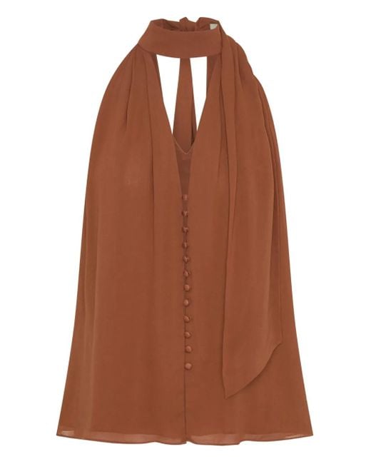 Women's Brown Sumira Neck-Tie Buttoned Top