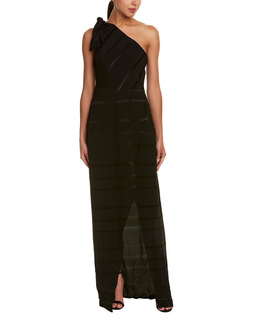 Go to Rue La LaThis item tends to run small (based on member feedback). We recommend sizing up for your best fit. Approximately 67in from shoulder to hem. Measurement was taken from a size 8 and may vary slightly by size. Model is 5ft 10in. Design details: self-tie shoulder strap, inner gripping at neckline, layered skirt with slit at front hem. Left side seam zipper with hook-and-eye-closure. Self: 53% acetate, 47% viscose. Lining: 79% nylon, 21% lycra spandex. Dry clean only. Made in the USA. Color: black