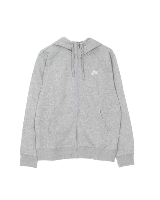 Men's Gray Lightweight Hooded Sweatshirt With Zip Sportswear Club Hoodie Full Zip French Terry Dk Heather/Matte