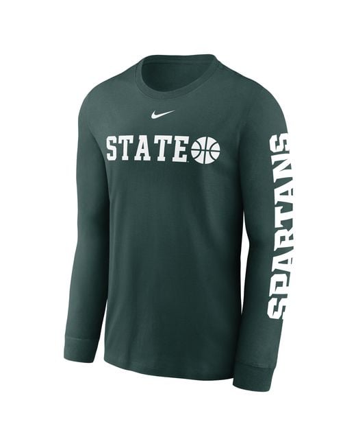 Made with soft cotton fabric for continuous comfort, the Michigan State Spartans Basketball Icon T-Shirt puts love for your favorite team front and center in bold graphics. [] Product Details:100% cotton. Machine wash. Imported. Style: NKAC3EYMST; Color: Pro Green; Size: S; Gender: Male; Age Group: Adult | Michigan State Spartans Basketball Icon Men's Nike College Long-Sleeve T-Shirt in Green, Size: Small | NKAC3EYMST-JQQ