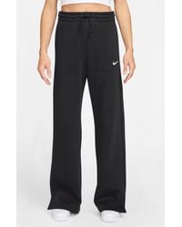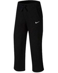 Go to ASOSTrack pants by Nike This item is excluded from promo Worn and shot by one of our models at home High rise Elasticated drawstring waist Side pockets Nike logo embroidery to thigh Wide