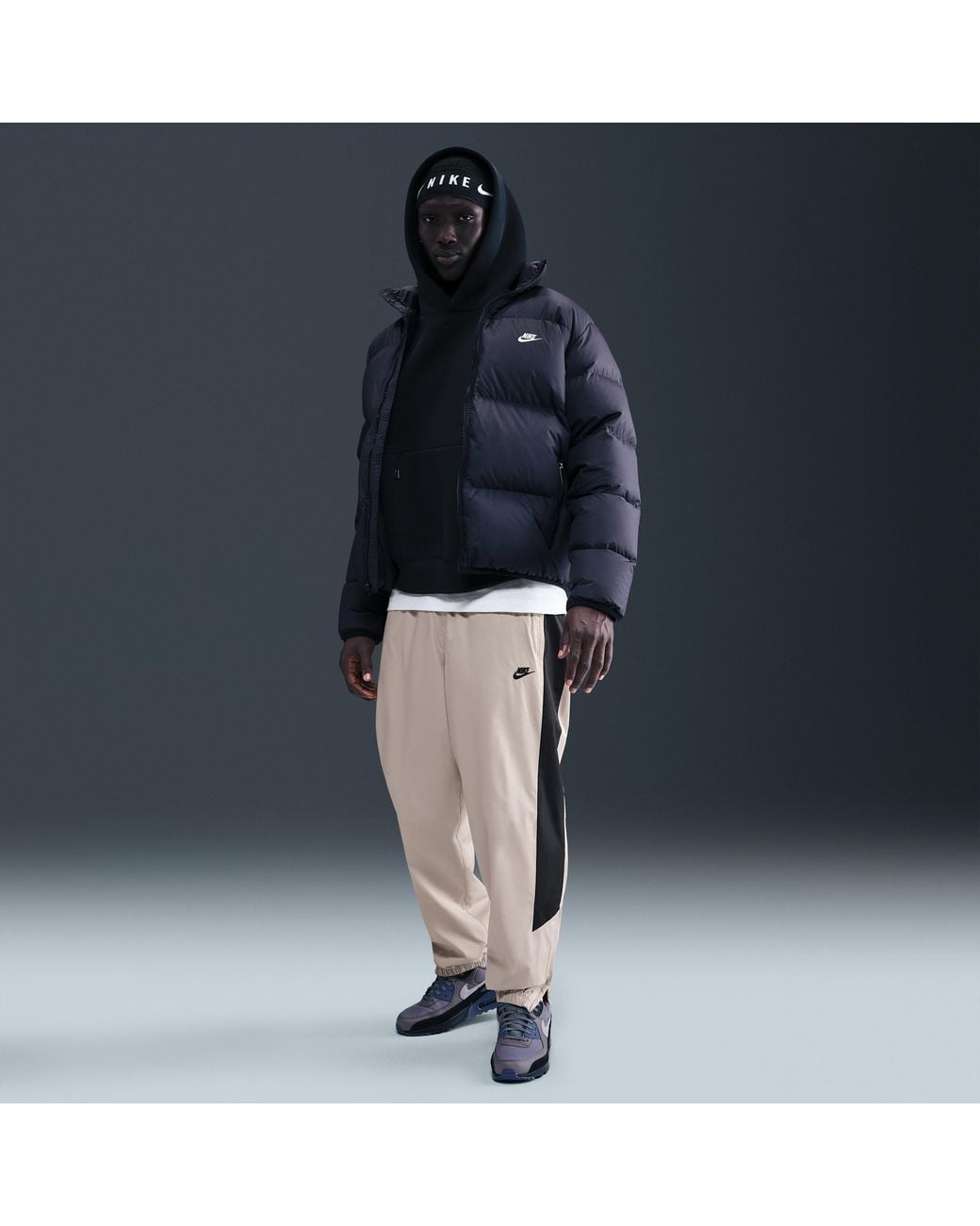 Heritage style meets weather-ready tech. These Windrunner pants are crafted with a crisp, woven taffeta fabric that's finished with Nike Storm-FIT tech to help resist wind and rain. A mesh lining offers a breathable feel while a relaxed fit through the seat and thighs helps keep you comfortable. Benefits:Nike Storm-FIT technology resists elements like wind and water to help keep you comfortable in harsh weather conditions. Zippers on the lower leg let you switch up the style around your shoes. [] Product Details:Embroidered logo. Mesh lining (above knee). Woven lining (below knee). Zippered hand pockets. Zippered back pocket. Elastic cuffs. Elastic waistband with drawcord. Body:100% polyester. Lining:100% polyester. Machine wash. Imported. Style: HV8371; Color: Cream II/Black/Black; Size: 4XL; Gender: Male; Age Group: Adult | Nike Windrunner Men's Lined Pants in Brown, Size: 4XL | HV8371-236