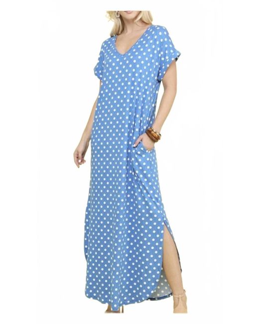 Women's Blue Short Sleeve Vneck Maxi Dress With Pockets