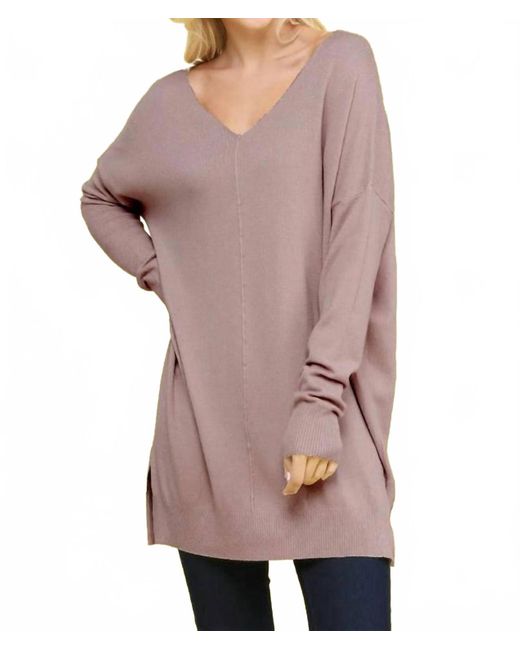 Women's Pink V Neck Loose Fit Tunic Length Soft Sweater Top