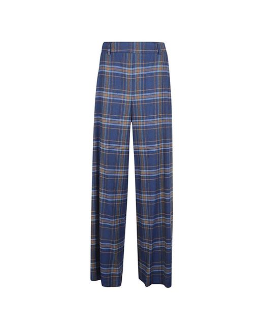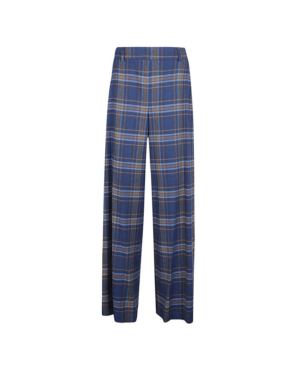 Women's Blue Checked Wide-Leg Pants