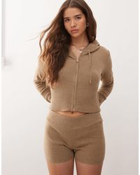 Noisy May Women's Gray Knitted Zip Cardigan Co-ord With Hood