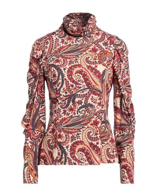 Top, woven, paisley-print, no appliqués, turtleneck, long sleeves, stretch , Color: Beige , Size: 8