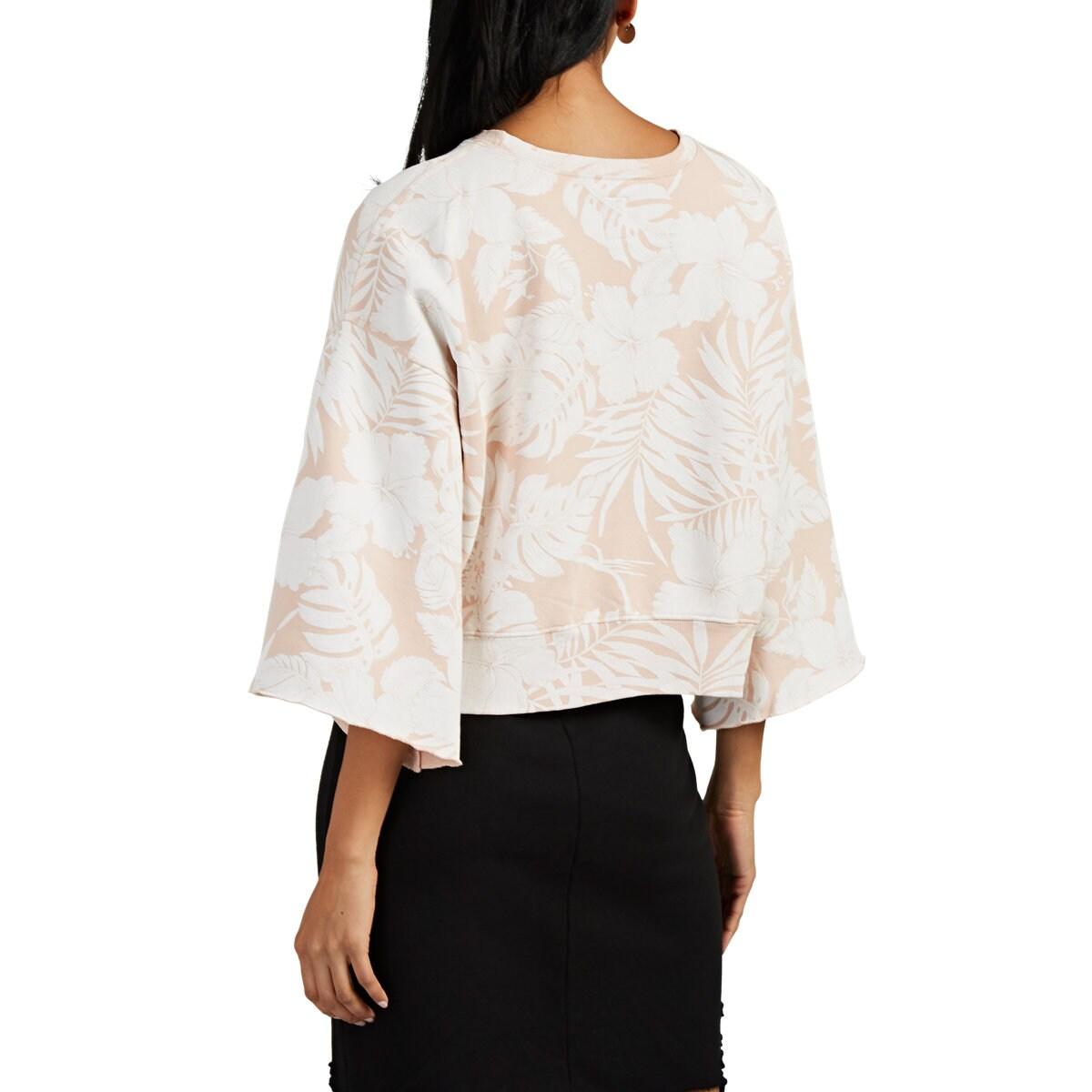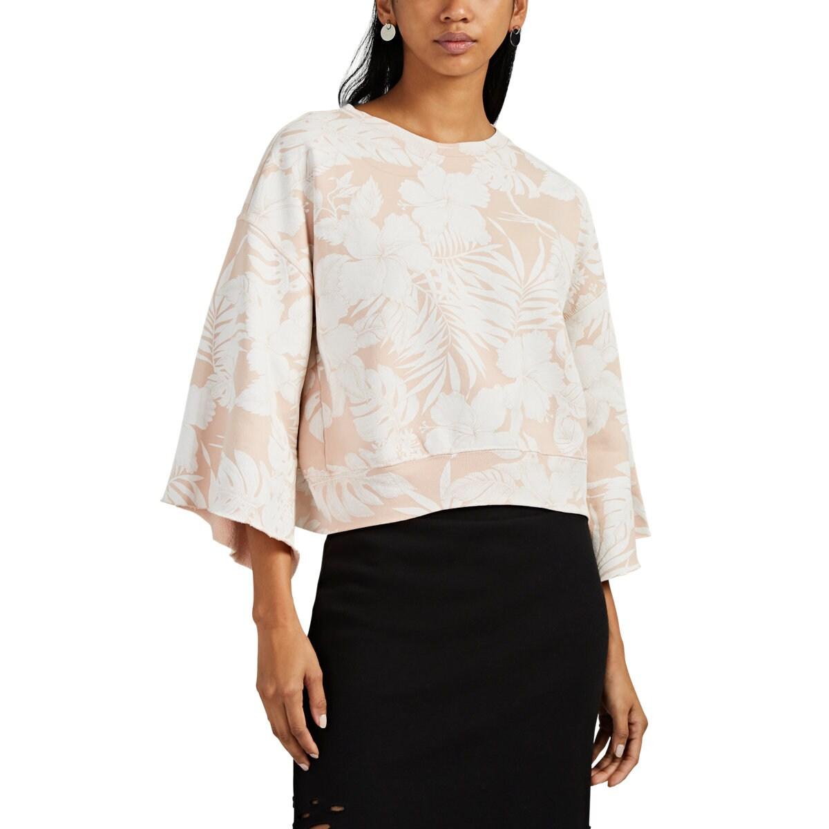 Go to Barneys WarehouseCut from pink cotton French terry, NSF's Delia sweatshirt is printed with a white tropical floral motif. This oversized style features three-quarter-length bell sleeves designed with raw-edge cuffs. Rib-knit crewneck and hem. Drop shoulders. Three-quarter-length bell sleeves. Raw-edge cuffs. Pulls over. 100% cotton. NSF Women's Delia Floral Cotton Sweatshirt - Pink Size M A great designer gift. Stay on top of Spring trends and shop NSF at Barneys Warehouse. Color: pink