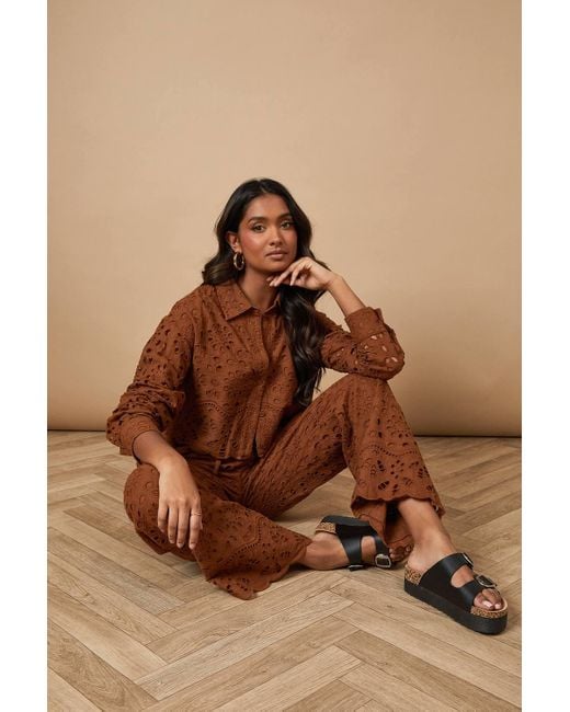 Womens Broderie drawstring waist Trouser - Brown - 10 - Intricate broderie anglaise pattern throughout Drawstring waist for adjustable fit Wide-leg silhouette for effortless comfort Matching top available for a coordinated set Versatile design suitable for various casual occasions Embrace feminine charm with these exquisite broderie drawstring waist pants from Oasis. The all-over eyelet pattern adds a touch of delicate sophistication to your closet, while the wide-leg cut ensures all-day comfort and ease of movement. Perfect for warm weather outings, these pants can be styled with the matching top for a chic coordinated look, or paired with a simple camisole for a more relaxed ensemble. Dress them up with wedge sandals for a garden party, or keep it casual with flat sandals for a leisurely brunch with friends. The drawstring waist allows for a customised fit, making these pants a versatile addition to your daywear collection. Ideal for family gatherings, picnics in the park, or a relaxed day out shopping, these Oasis pants effortlessly blend style and comfort for the fashion-forward woman. Color: brown