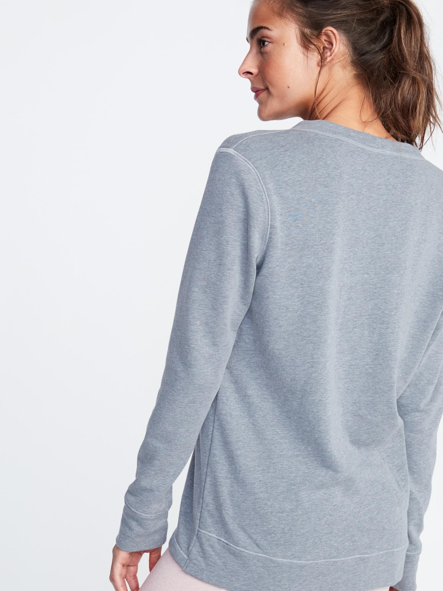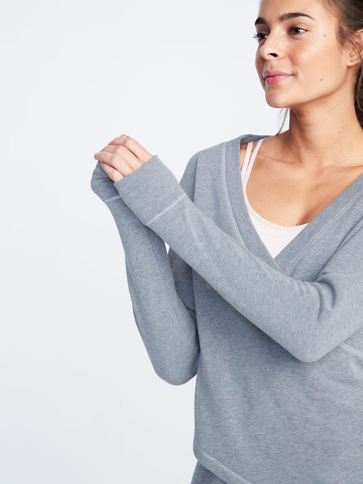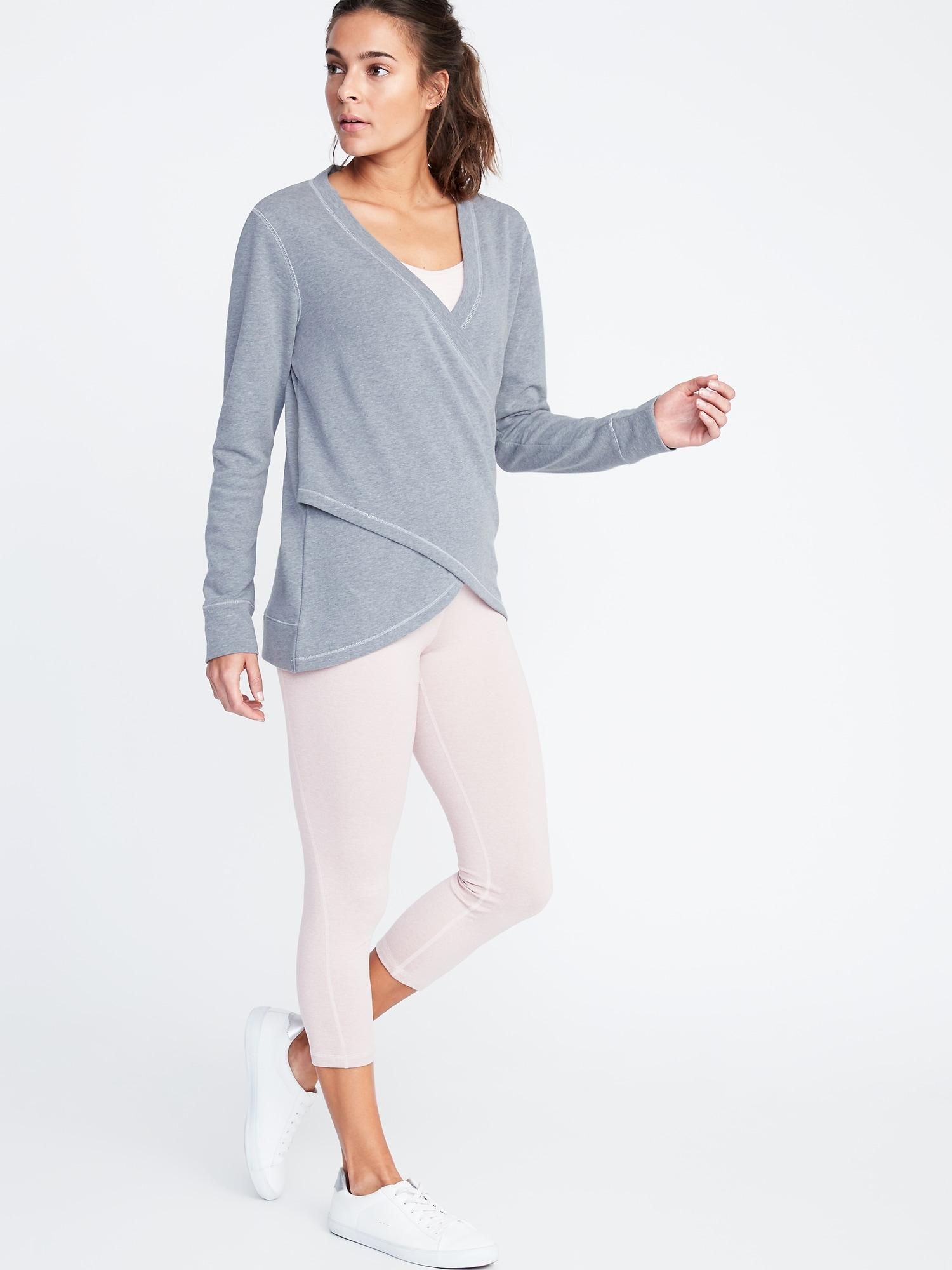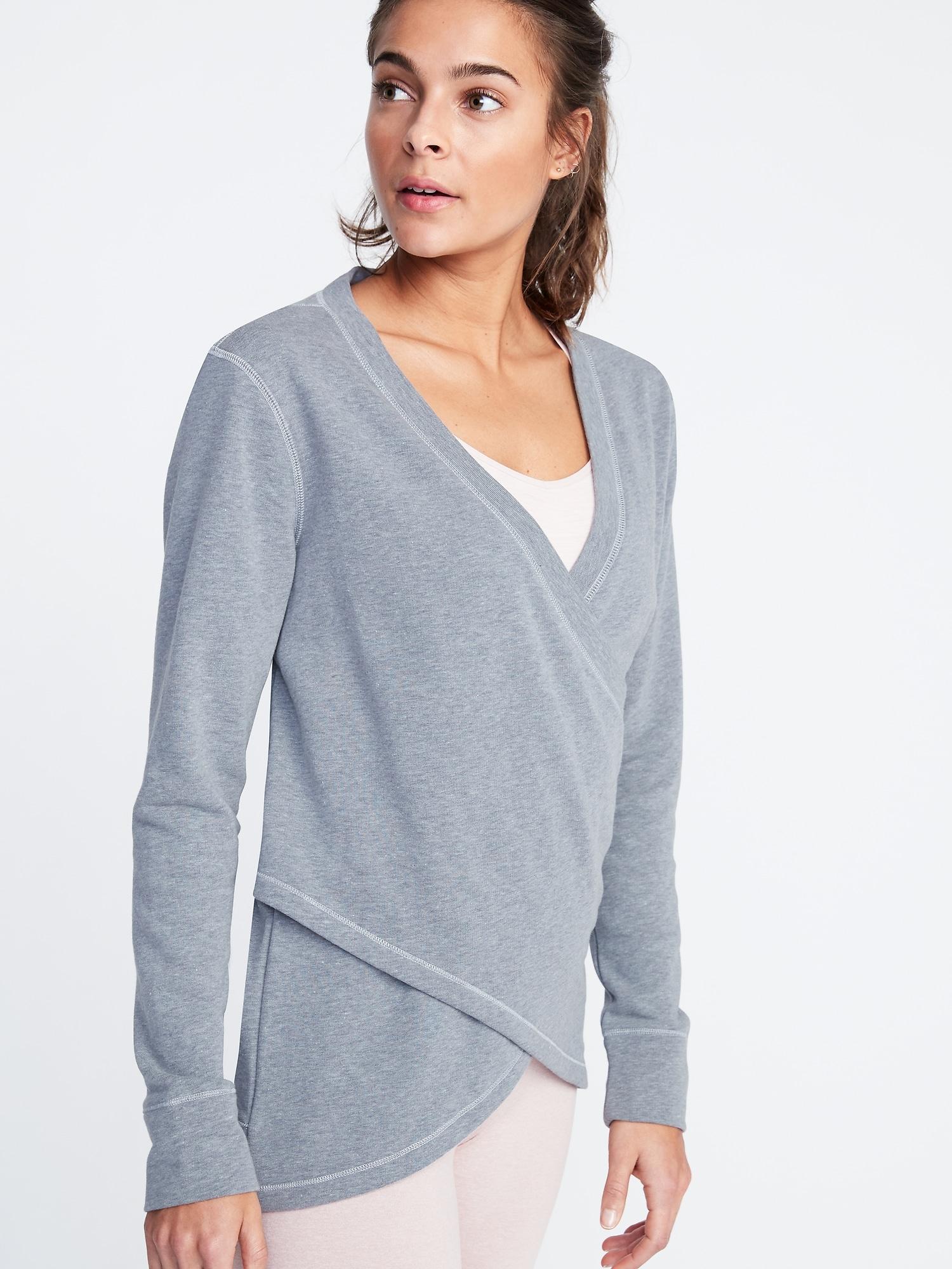 Go to Old NavyOnline exclusive! Wrap-front styling, with rib-knit trim. Long sleeves, with rib-knit cuffs. Soft, cozy french terry. Easy pull-over style. Relaxed fit through body. Pullover hits below waist. Model is approximately 5'9"" and wears a size S (numeric size 4). Polyester 48% cotton 52%". Color: gray