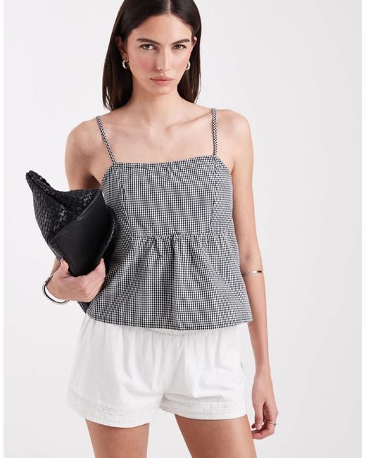 Tops by Only Gingham design Square neck Adjustable straps Cropped length Regular fit.