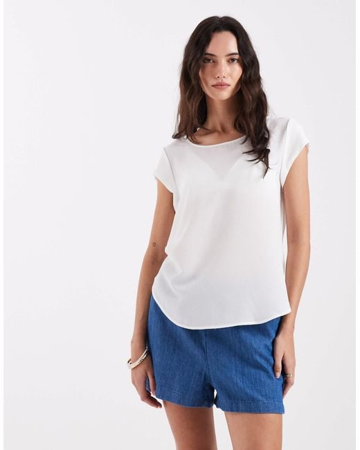 Tops by Only Round neck Cap sleeves Zip-back fastening Curved hem Regular fit. Polyester/Elastane. Color: white