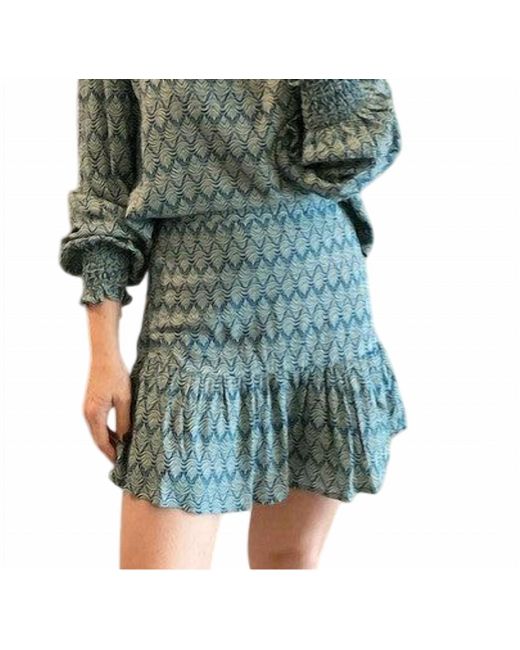 Tuck in your favorite tee for a more laid-back vibe.Introducing the Printed Mini Skirt by Osamore, a chic and patterned piece perfect for any stylish woman. This skirt features a ruffle hem and a convenient zipper closure on the side, with an elastic waist at the back for added comfort. Its eye-catching blue print and mid-rise fit make it an essential addition to your closet. Please note that care instructions are not specified. Color: green