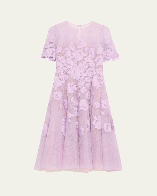 - Roses Guipure Lace Applique Fit-Flare Midi Dress