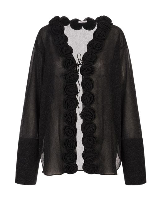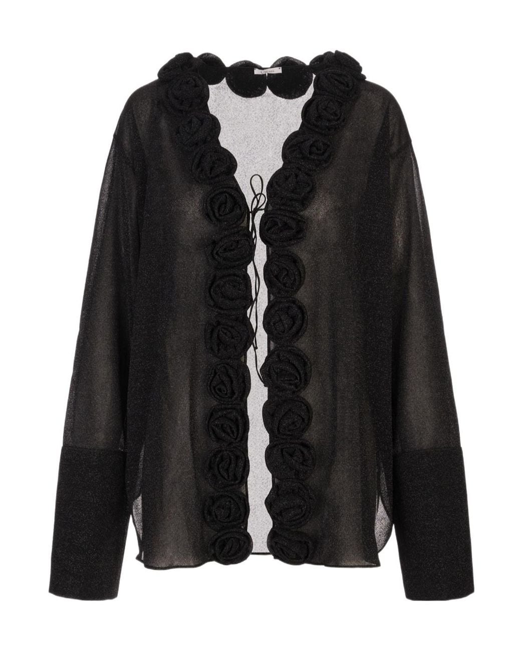 Women's Black Rose-Embellished Glitter-Detail Blouse