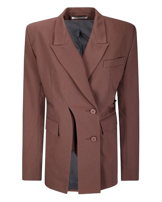 Women's Brown Split-Detail Buttoned Blazer