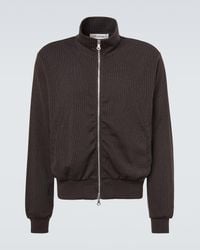 Go to SugarOur Legacy presents a striking red jacket that embodies a bold aesthetic. Its structured silhouette and long sleeves create a modern look. The front zipper closure adds practicality, making it suitable for casual