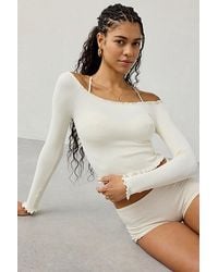 Go to Urban OutfittersEveryone's favorite top from Out From Under. Cropped short in our signature seamless knit for a stretch-to-fit body-hugging silhouette. Notched at the neck with top-stitched detailing. Only at UO. Model in Light Purple