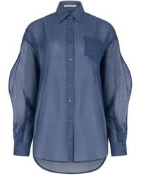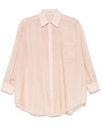 Go to FARFETCHBright pink button fastening patch pocket puffed sleeve detail curved hem Size: XS/S. Gender: Female. Material:Silk/Cotton. Color: pink