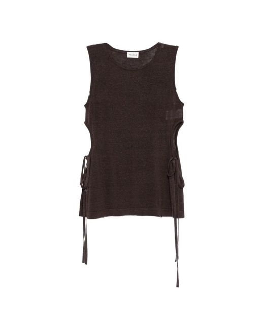 Dark brown side tie fastening round neck sleeveless cut-out detail Size: XS. Gender: Female. Material:Viscose/Fabric. Color: black