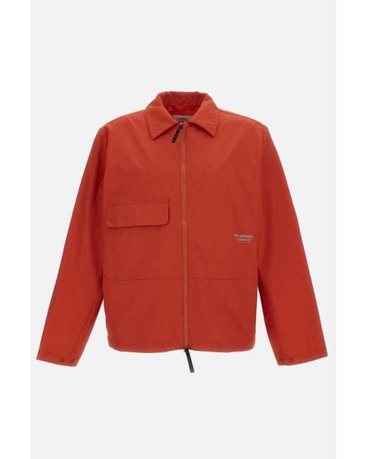 Nylon jacket with water-repellent finish Relaxed fit Unlined Pointed collar Central closure with two-way zip Reflective logo on the front Flap pocket with magnetic buttons Side zip pockets Back utility pocket Cuffs with button Adjustable drawstring hem Color Orange. . Composition 100 PA Color: red