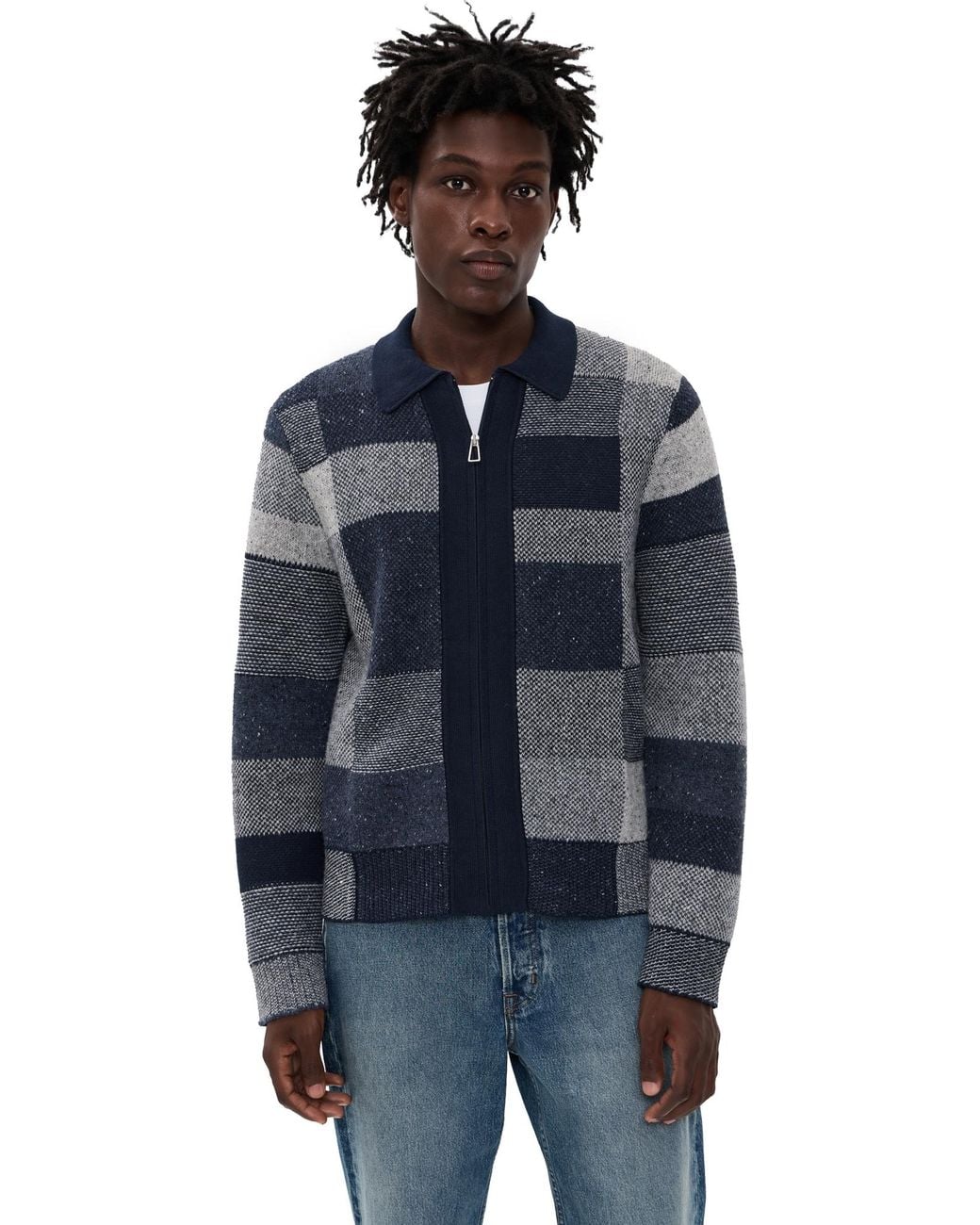 Men's Blue Zip Patchwork Cardigan