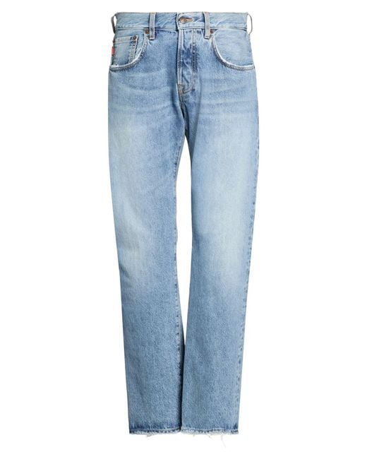 Straight-leg jeans, denim, faded, solid color, brand logo, medium wash, mid rise, slim fit, button fastenings, five pockets, machine wash or dry clean, do not bleach, do not tumble dry, contains non-textile parts of animal origin , Color: Blue , Size: 31