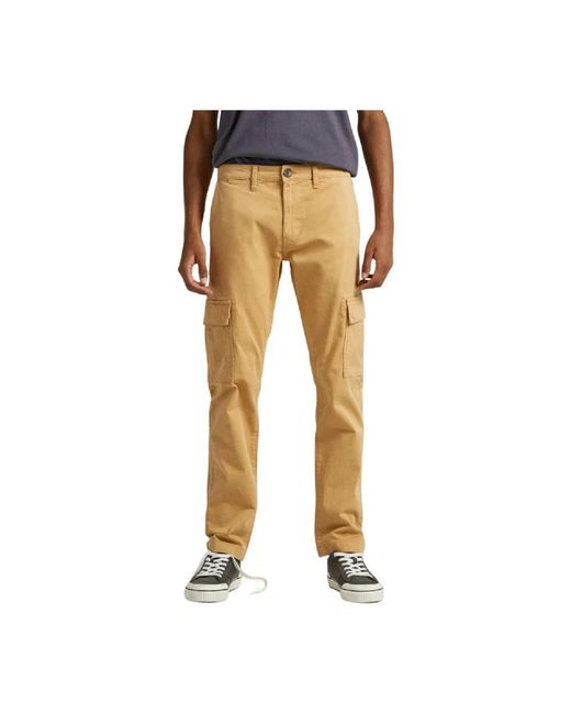 Get ready to embark on urban adventures with the Sean cargo pants from Pepe Jeans, an essential garment for modern and daring men. With its functional and contemporary design, these pants offer unparalleled style and comfort. Featuring a straight cut and relaxed silhouette, they perfectly adapt to your figure, providing freedom of movement with every step you take. The camel tone, a subtle blend of casual and sophistication, is versatile and easy to combine with different styles. Stand out with its multiple pockets, adding an urban and practical touch to your outfit. With side pockets with flap closure and back pockets, youll have more than enough space to carry your essential belongings wherever you go. Made with high-quality materials, the Sean cargo pants guarantee durability and resistance, ideal for facing the active city lifestyle. Color: yellow