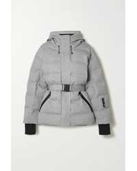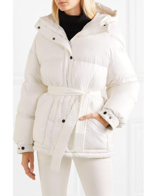 Women's White Belted Hooded Quilted Down Ski Jacket