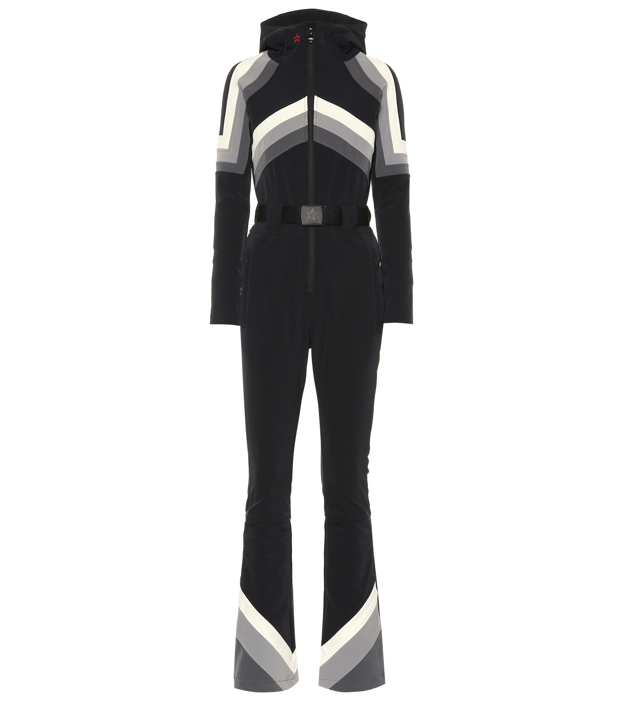 Skiwear label Perfect Moment's Tignes jumpsuit blends retro style with modern technology to create the perfect all-in-one for winter sports. Color: black