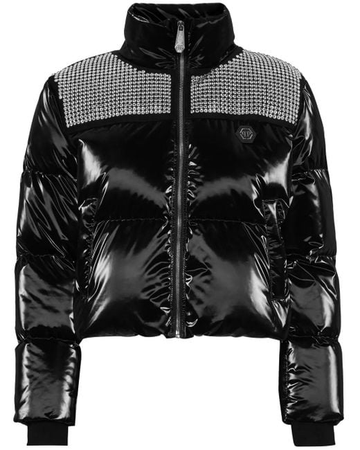 - Crystal-Embellished Cropped Puffer Jacket