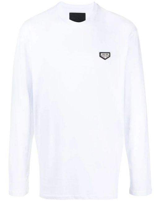 White cotton logo print at the chest round neck long sleeves Size: S. Gender: Male. Material:Cotton. Color: white
