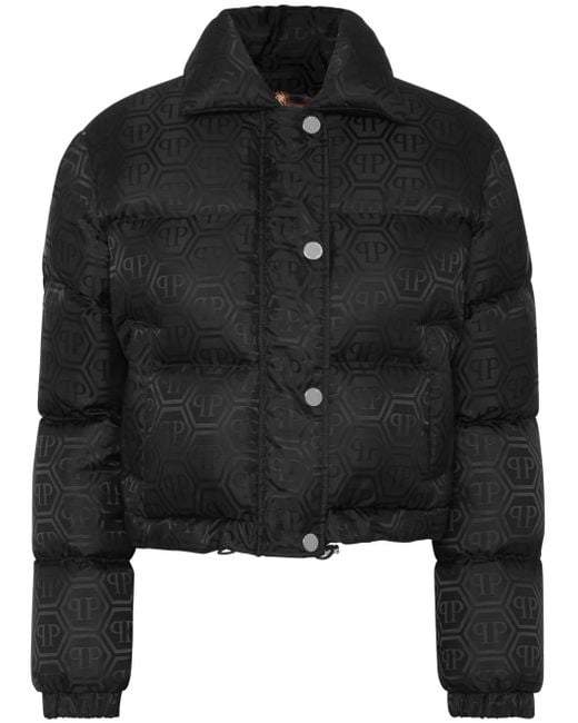 Women's Black Monogram Cropped Puffer Jacket