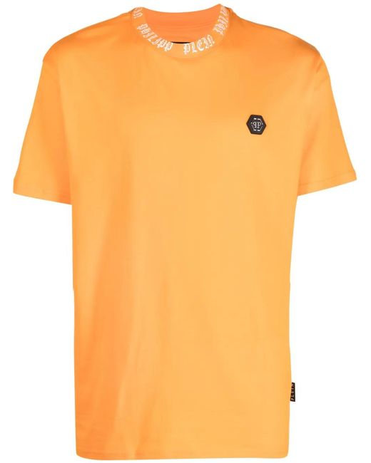 Men's Orange Ss Gothic Plein Logo-Patch T-Shirt