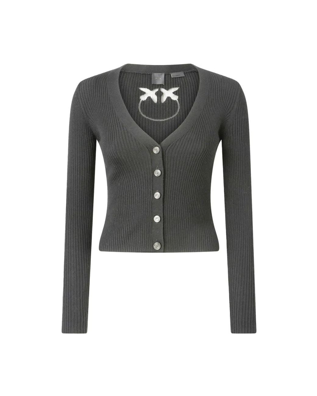 Elevate your style with this Pinko Tilacino wool cardigan featuring a transparent logo design. Crafted from 100% wool for a luxurious feel.