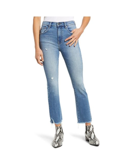 - Distressed High Waist Chew Hem Crop Bootcut Jeans